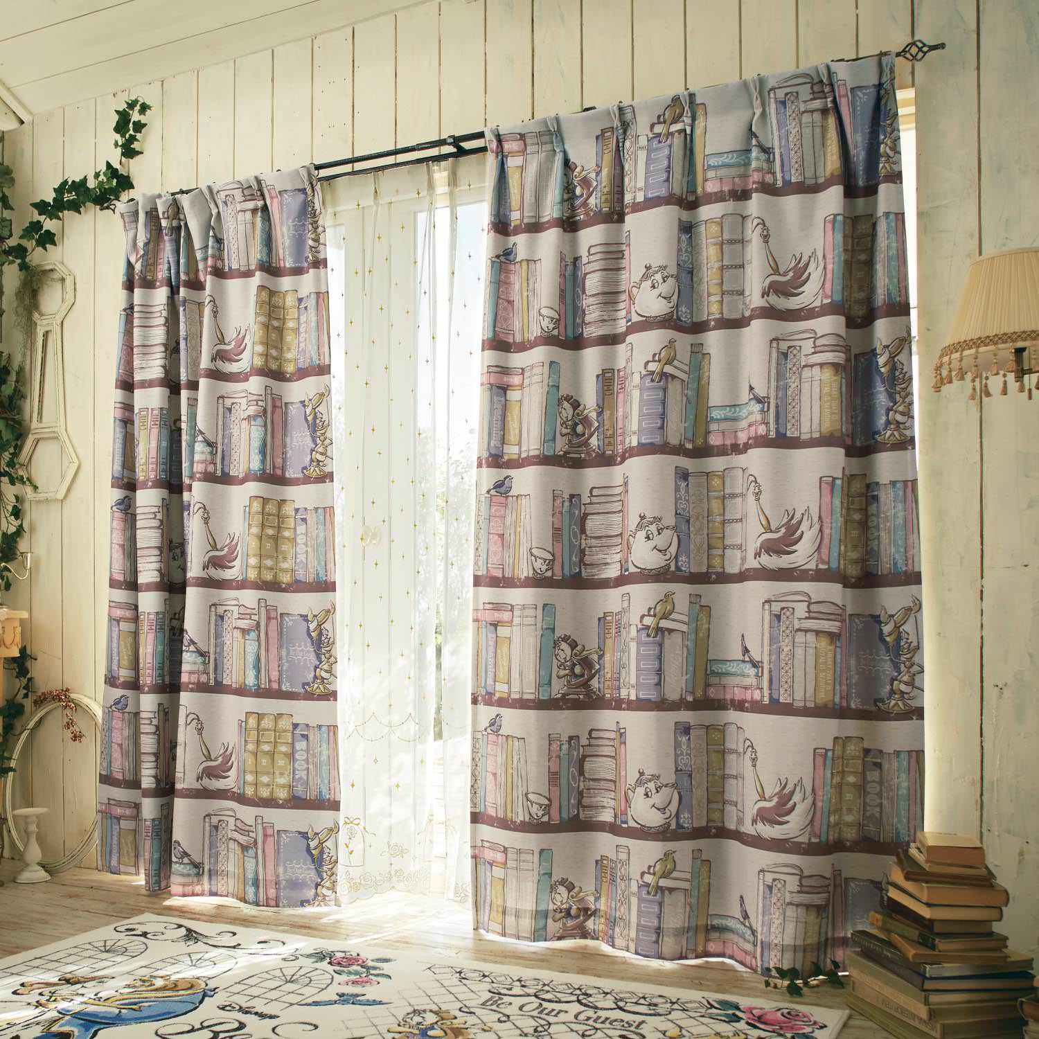 おうちディズニー 本棚デザインの裏地付き遮光カーテン 美女と野獣 ディズニー 通販のベルメゾンネット